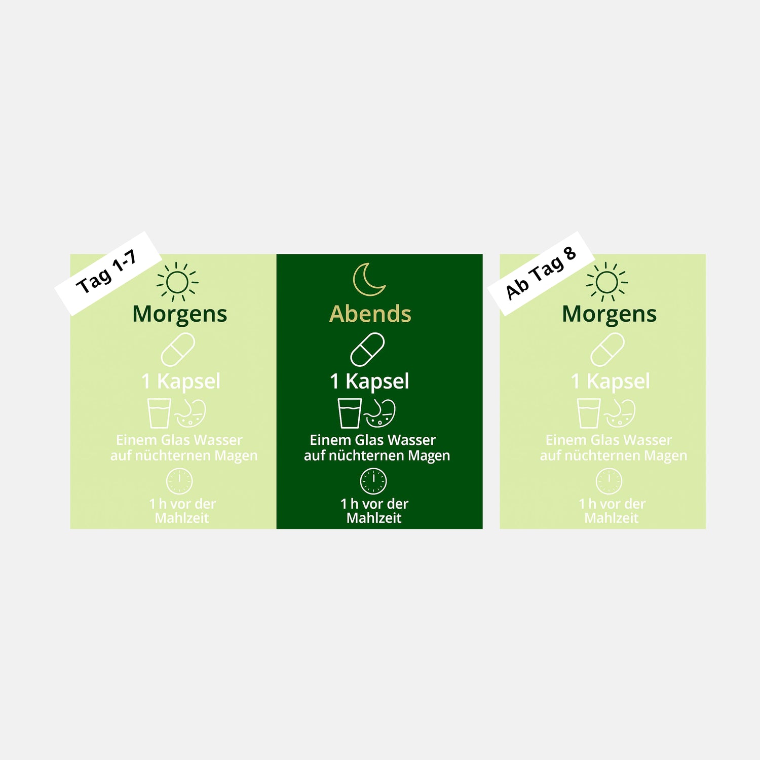 Tag 1 - 7: 2 x täglich 1 Kapsel, morgens & abends